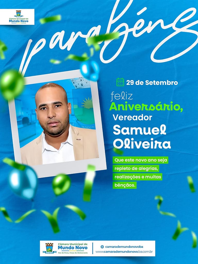 Samuel, sua atuação firme e comprometida fortalece o trabalho da nossa Câmara e contribui para o bem de toda a população. Que esta nova etapa da sua vida seja repleta de saúde, conquistas e felicidades.