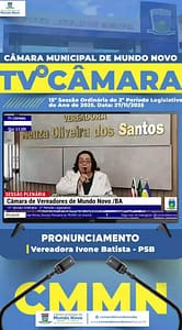 Ver essa foto no Instagram Uma publicação compartilhada por Câmara Municipal de Mundo Novo (@camarademundonovoba) 👉 Câmara Municipal de Mundo Novo – Voz do Povo, Força da Democracia! 🤝🏽🇧🇷