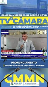 Confira o pronunciamento do Vereador Samuel Oliveira – União Brasil, durante a 15ª Sessão Ordinária do 2º Período Legislativo de 2025, realizada no dia 27/11/2025, na Câmara Municipal de Mundo Novo.🏛